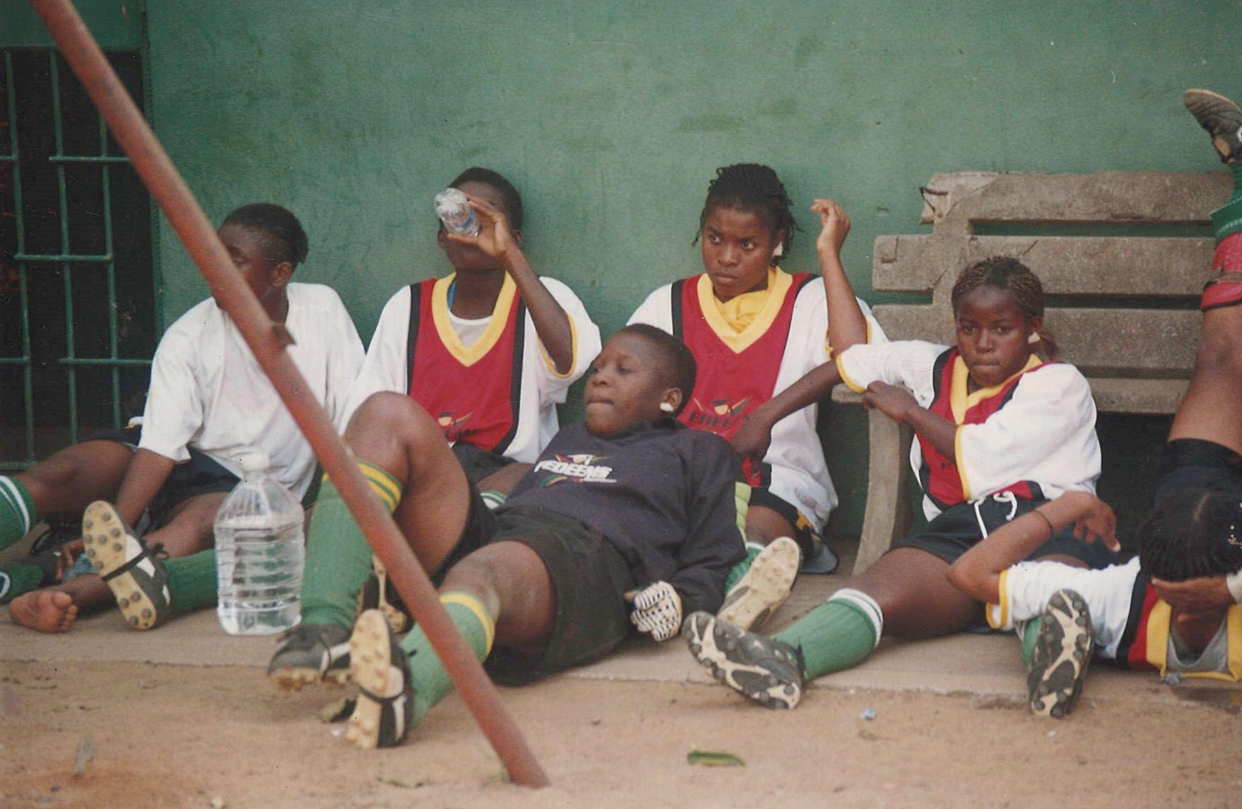 Guarda-redes Elsa Mavile e companheiras de Moçambique, fotografia, cor, 2002. Arquivo pessoal: Elsa Mavile.